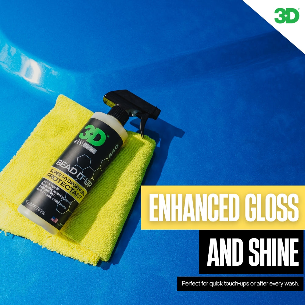 Discover the ultimate solution in car care with 3D's Bead It Up, a premium ceramic booster spray that doubles as a quick detailer. Bead It Up stands out for its unique formula, utilizing proprietary chemistry that sets a new standard in detailing.