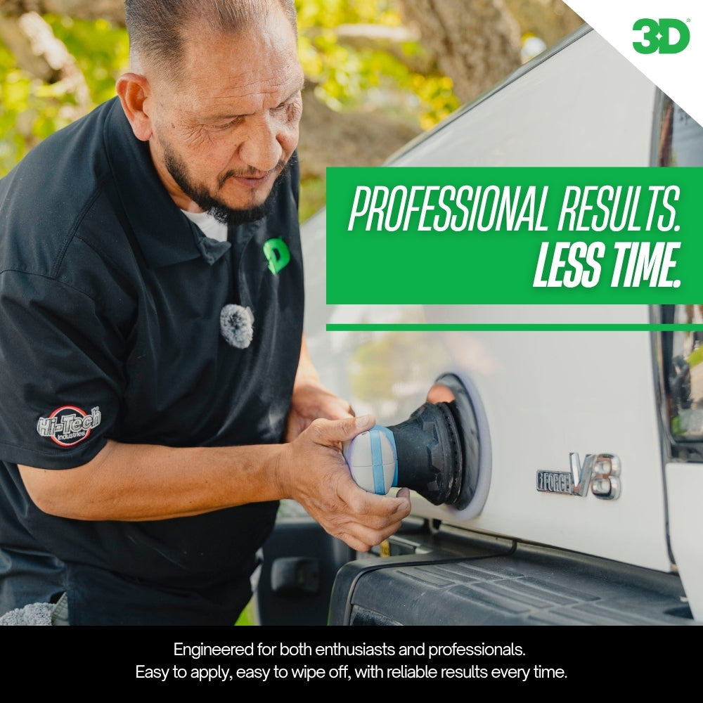 Whether you're dealing with light scratches or more significant swirls, 3D ONE adjusts to your needs. Use it with a rotary polisher for aggressive cutting or switch to a dual-action polisher with a softer pad for a fine finish. This versatility makes it an essential product for both quick touch-ups and comprehensive detailing sessions.